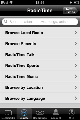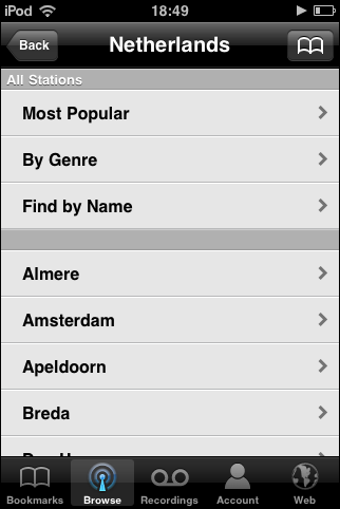 Het is moeilijk om een app te bedenken met een intuïtiever menu dan TuneIn Radio. Onderaan vind je 5 knoppen, waaronder 'Browse'. Hiermee navigeer je door het aanbod op basis van taal, land of genre (muziek of sport). Zit je bijvoorbeeld in het aanbod voor Belgische of Nederlandse radio, dan filter je ook hier weer op basis van populariteit, genre of stad. Heb je gewoon zin om een bepaalde artiest te horen, dan zoek je via de balk bovenaan: ongetwijfeld draait een dj ergens ter wereld jouw favoriete liedje.